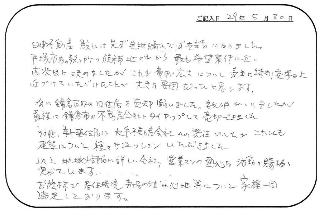 土地の購入・自宅の売却でお世話になりました。」